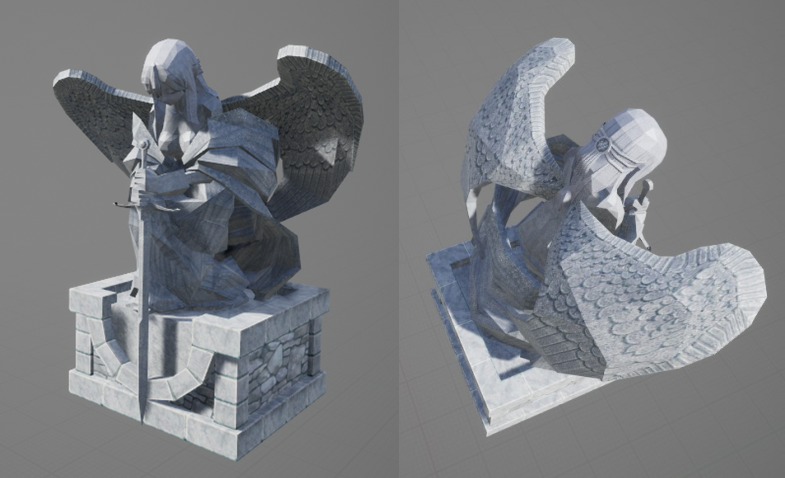 <언리얼 엔진이 읽을 수 있도록 파일을 수정했지만 Smoothing Group 값이 없어 각져 보이는 여신상>