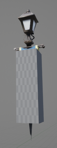 <언리얼 엔진에서 충돌 박스와 피벗 메시가 그대로 보이는 던바튼 광장 가로등>