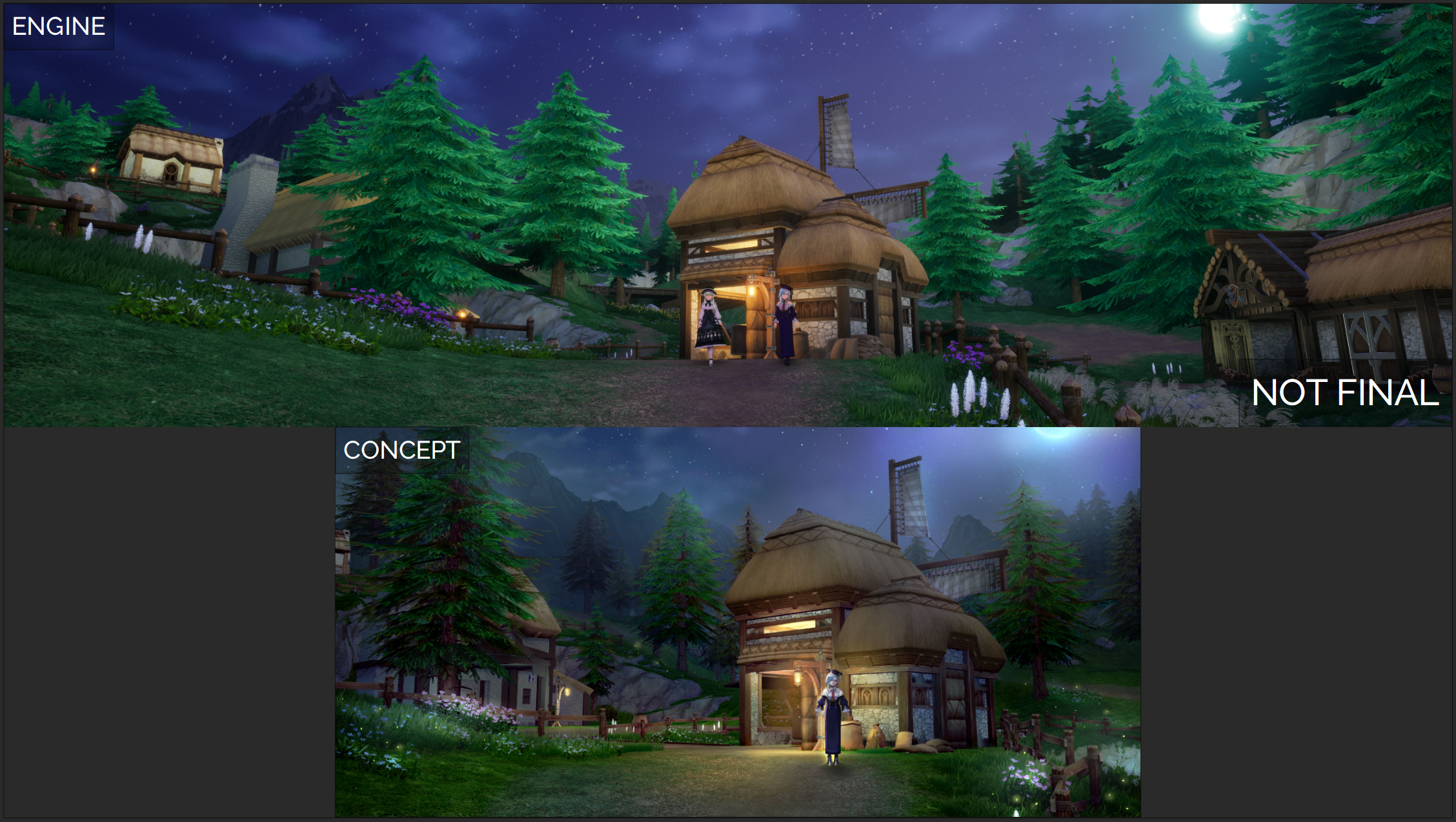 콘셉트 아트에 맞는 마비노기만의 시간대 변화를 주고자 낮/밤부터 콘셉트 표현에 집중하기 시작했습니다.