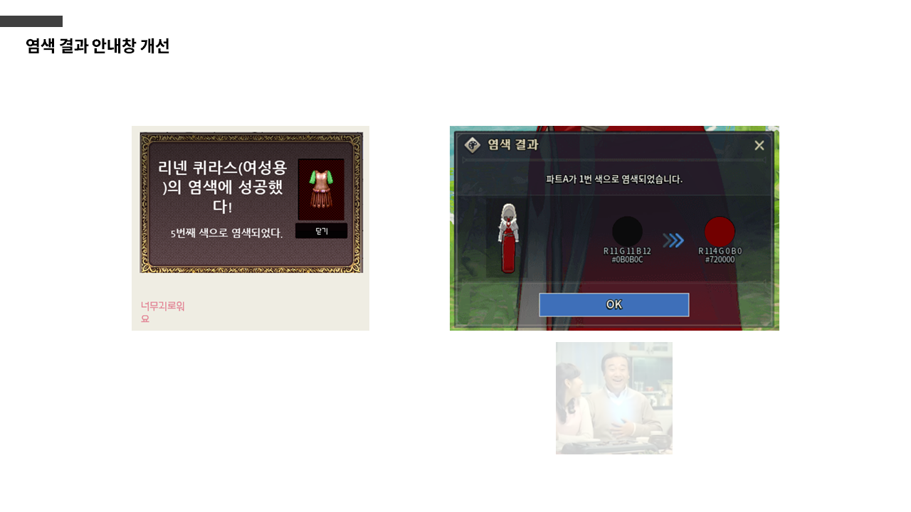 이건 염색뿐만 아니라 다른 여러 시스템에도 활용되는 결과창의 이슈이지만,