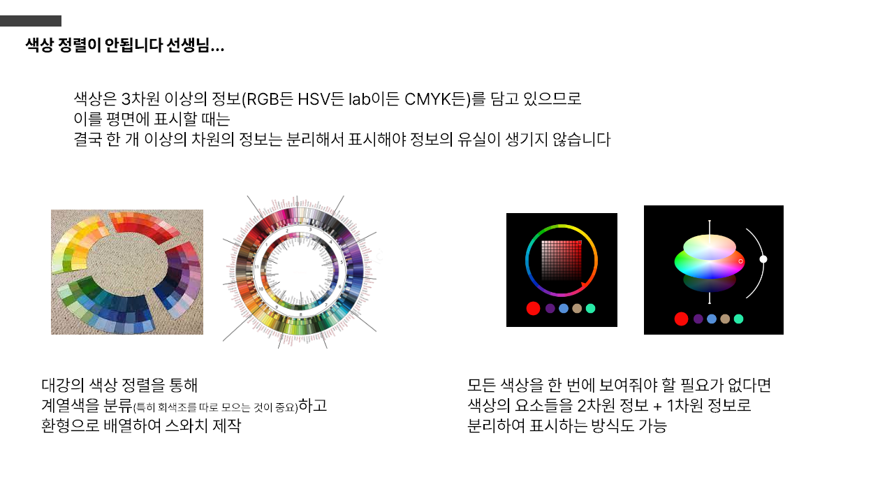 어떤 방법을 활용해도 쨘! 하면서 자동으로 예쁜 색상 스펙트럼을 나열할 수 없었기에