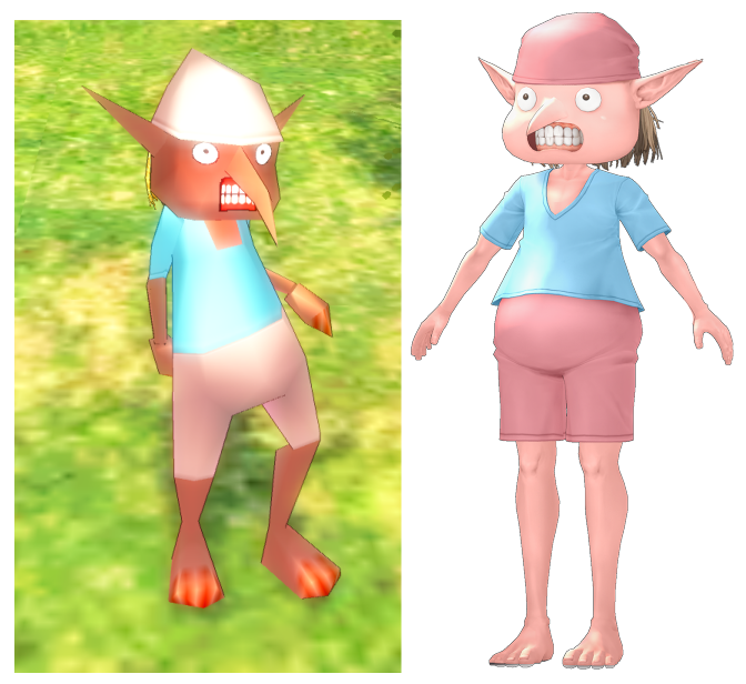 오른쪽에 있는 임프가 더 나중에 나왔으므로 비주얼 적으로 각진 부분이 적어 완성도가 더 높아 보입니다. 또한 단순히 귀여움을 놓고 봤을 때 오른쪽이 더 귀엽지요.