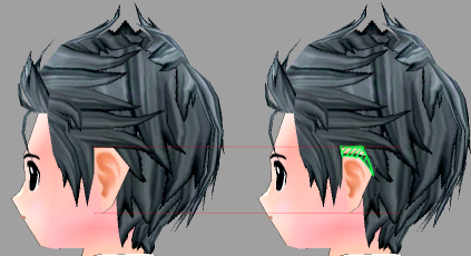 .oO(가발과 헤어는 모두 귀 모양에 맞춰서 머리가 잘려있어서, 예를 들어 이렇게  귀가 작아지면 초록색 영역만큼 가발을 메꾸는 작업을 해야 해요.)