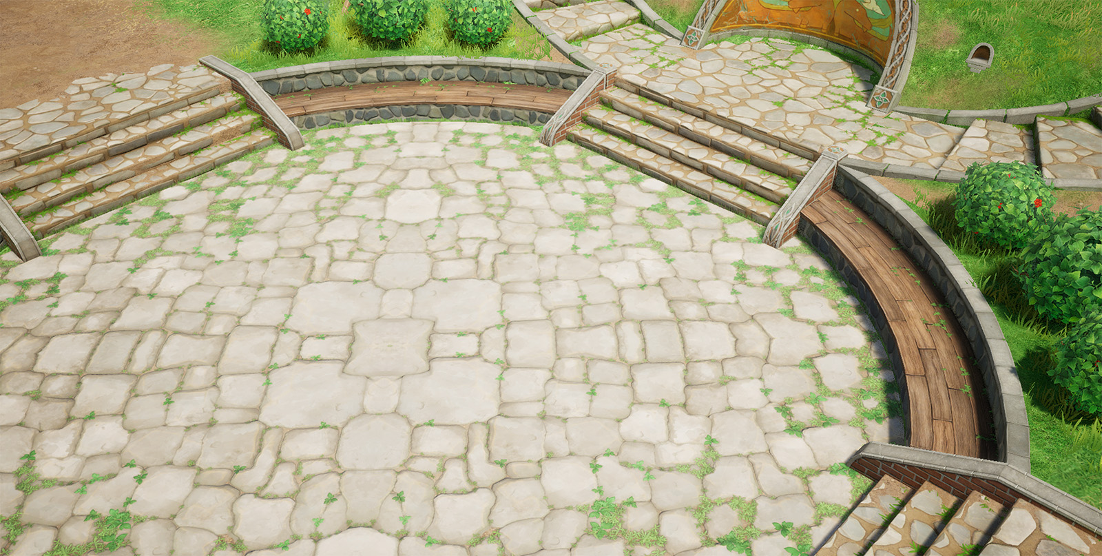 사실적 표현이 어려운 것들... 예를 들어 풀 이라던지 돌과 같은 자연물에서는 사진 텍스쳐 또는 pbr소스들을 활용해서 제작하는 것이 좋을 것 같고