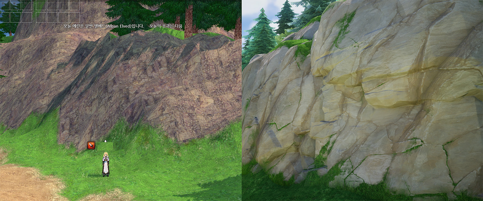 마비노기 텍스처를 살펴보면 실사에 가깝고 밀도가 높은것을 확인할 수 있었습니다.
